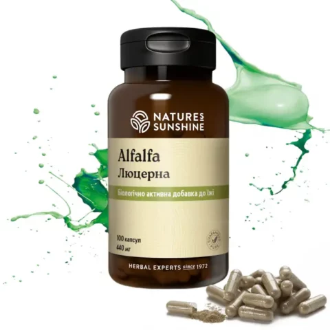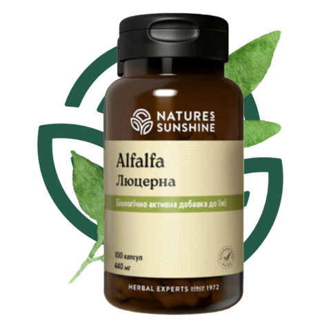 Люцерна — входящее в состав БАД Alfalfa растение с мощной корневой системой и ветвистыми стеблями, достигающими порой высоты 1,5 метра. Она богата на жизненно важные минералы, такие как цинк, медь, марганец, фосфор, железо. Содержащийся в стеблях фтор является ценным элементом для укрепления зубов.